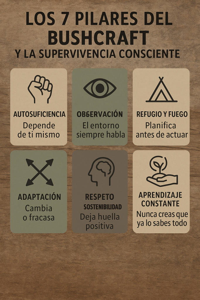 Es un tema mental y técnico que se construye alrededor de tres principios básicos: conocimiento, adaptabilidad y humildad. Sin embargo, las personas que lo practican ya no desean ser ermitaños, sino reconectar con lo que es verdaderamente vital: usar sabiamente la abundancia de recursos naturales, dominar las habilidades básicas, alcanzar la serenidad que solo la naturaleza puede ofrecer. Esencialmente, el Bushcraft representa la libertad individual total de las personas hacia su entorno ambiental. Habilidades como encender un fuego sin las herramientas modernas a tu disposición, construir refugios, identificar qué plantas son más útiles, incluso obtener agua limpia, son habilidades técnicas; lo que distingue a un verdadero practicante es cómo se enfrenta al mundo. El Bushcraft incluye más que solo saber sobrevivir en un día particular, y se trata de aprender a vivir la vida de manera segura en el bosque y en la vida. Cada método en sí mismo es una lección de disciplina, paciencia y autorregulación. En la era de la velocidad hiperrápida, obsesionada con la tecnología, estas son habilidades que son más vitales que nunca. Autonomía del yo: El Bushcraft se basa en el principio de la autosuficiencia. La capacidad de resolver problemas con lo que está disponible y usar la originalidad, la observación y la práctica. Eso no significa hacer todo lo que tus intereses personales requieren, pero tampoco significa hacer lo que no tienes. Depender de factores externos es extremadamente peligroso en situaciones de supervivencia. En el mundo real, lo mismo: la dependencia emocional o material de entidades externas te debilita enormemente. El Bushcraft nos instruye en la planificación, prácticas anticipatorias y manejo de lo que tienes. Antes de embarcarte en viajes, tienes en cuenta la dirección del viento, los recursos de agua disponibles y si hay algo de material para refugiarse y encontrar fuego. Al igual que en la vida cotidiana, las personas necesitan evaluar qué son y dónde pueden, y no pueden, experimentar antes de actuar. La autosuficiencia no es soledad; es dominio. Manejas tu mente, tus emociones y tus herramientas. Y eso es en lo que se basa la verdadera supervivencia. Observación: la primera habilidad adquirida en el Bushcraft, aunque muchos no se dan cuenta de ello. Miras antes de cortar, encender o construir. La superficie, el clima; sonidos; animales; sombras. Cualquier cosa que parezca minúscula, de alguna manera, es una gran lección. Un gran error a menudo ocurre cuando tenemos el impulso de actuar sin pensar. Y esto es lo que también parece en la vida diaria: la mayoría reacciona sin conocer el contexto.