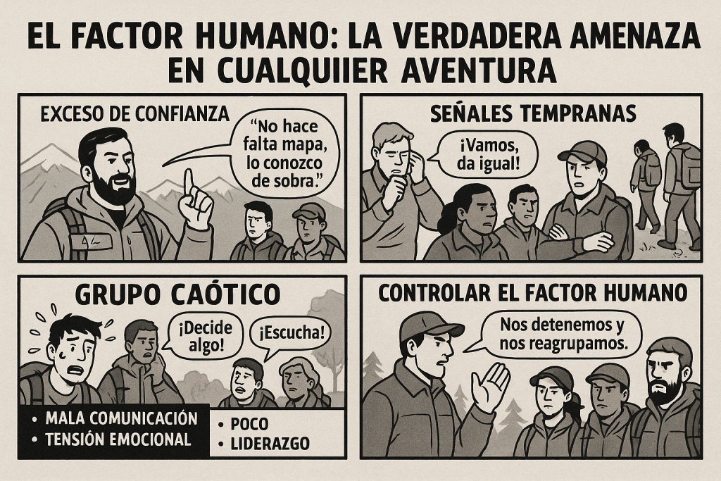 Personas que van sin revisar el track, sin consultar meteorología o sin ajustar el ritmo al más lento. Resultado: desorientación, agotamiento y conflictos.