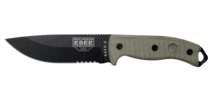 ESEE 6 (1095) | Al carbono | Flat | Robusto, garantía de por vida | Oxidación rápida, pesado para uso fino |