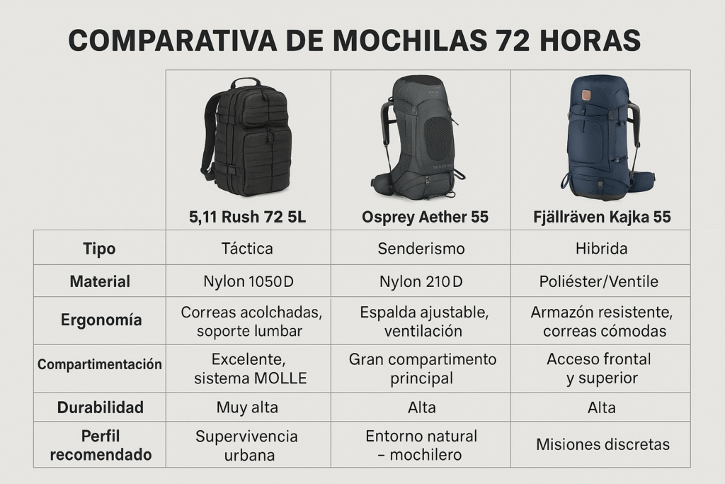 - “No nos referimos a improvisar utilizando lo que tengas a tu alcance: nos referimos a una mochila diseñada, evaluada y ajustada a tu ambiente real”.