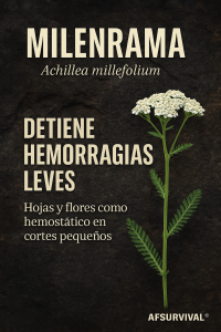 Achillea millefolium (milenrama) | Flores y hojas | Hemostático, detiene hemorragias leves | También útil en infusión digestiva |